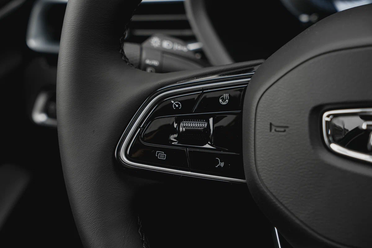 - Мультифункциональное рулевое колесо с кожаной отделкой чёрного цвета