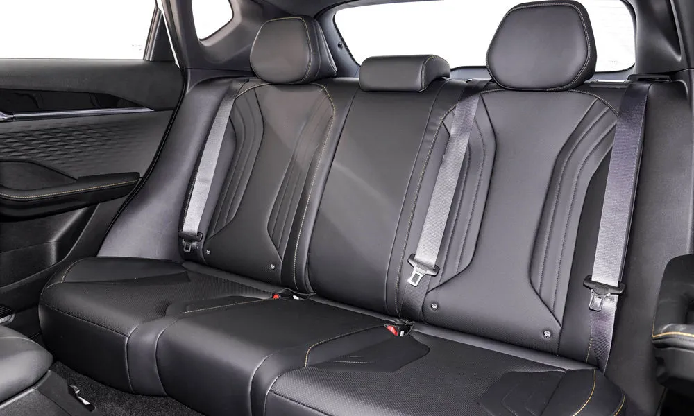 - Отделка интерьера и сидений экокожей чёрного цвета с контрастной строчкой красного цвета